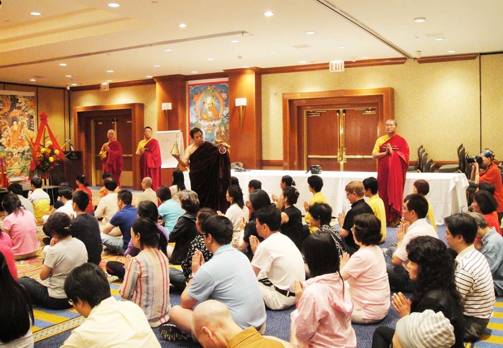 2009年7月,为了加速推动世界和平与人类健康,伟大世尊紫光上师应邀莅临纽约,布施法雨甘露。众多有缘,在不同因缘的指引下来到健康和平布道大法会会场。金碧辉煌的会场,紫金光聚耀,庄严的大曼陀罗法台示现了无限威仪。与会者个个翘首以盼,心中充满了好奇和期待。