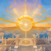 无量光佛圣诞吉日,伟大世尊紫光上师端坐金碧辉煌的光明大殿,圆满庄严,为僧俗四众弟子慈悲宣说《无量光佛经》之殊胜功效和利益。