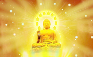 世尊紫光上师以清净的佛音开示:“为了让众生有机会净化身、凈化心,阿弥陀佛化身无边无际无量光,每一个众生都可以享受到他的能量加持,都可以念动经文凈化自己。只要有人临终前念动此经,就有机会来生进入凈土。”