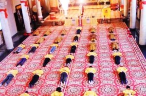 感恩之心,化为亿万身形,无论卵生、胎生、湿生、化生,皆于同一时间的无量国土中,形意之间,色空之间,非法非非法之间,施行大供礼法。即使以无穷身相,五体投地,心口意全供,亦难以表达对佛的无量尊崇,对紫光上师的无限敬仰;难以诉尽对佛的无尽赞誉,对紫光上师的无间称颂。礼毕,众人得修此大供之密法,霎时积业消融,心迹圆明,如获新生!