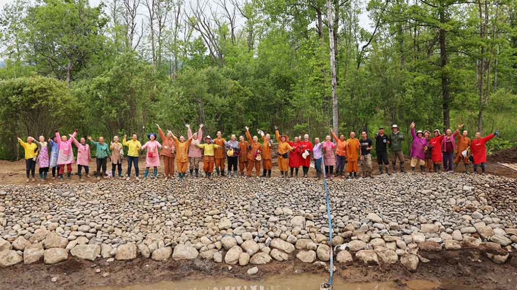 这座第二金鱼池的建设只是个缩影,他们的身影出现在圣山的各个角落。有些人立志永驻圣山,有些人仅仅是短暂停留,但为圣山出力的心是共同的。这不为他们更舒适地居住,只为了有缘人有个圣地可以寻访。他们为了众生的坚定之心,超过了那些石头。他们以比石头更坚挺的姿态,守护着正法的传承。如同那些石头守护着池塘一般,他们守护着紫金光停留的地方,只为了紫金光照耀娑婆,他们是一群真正的护持正法的人!