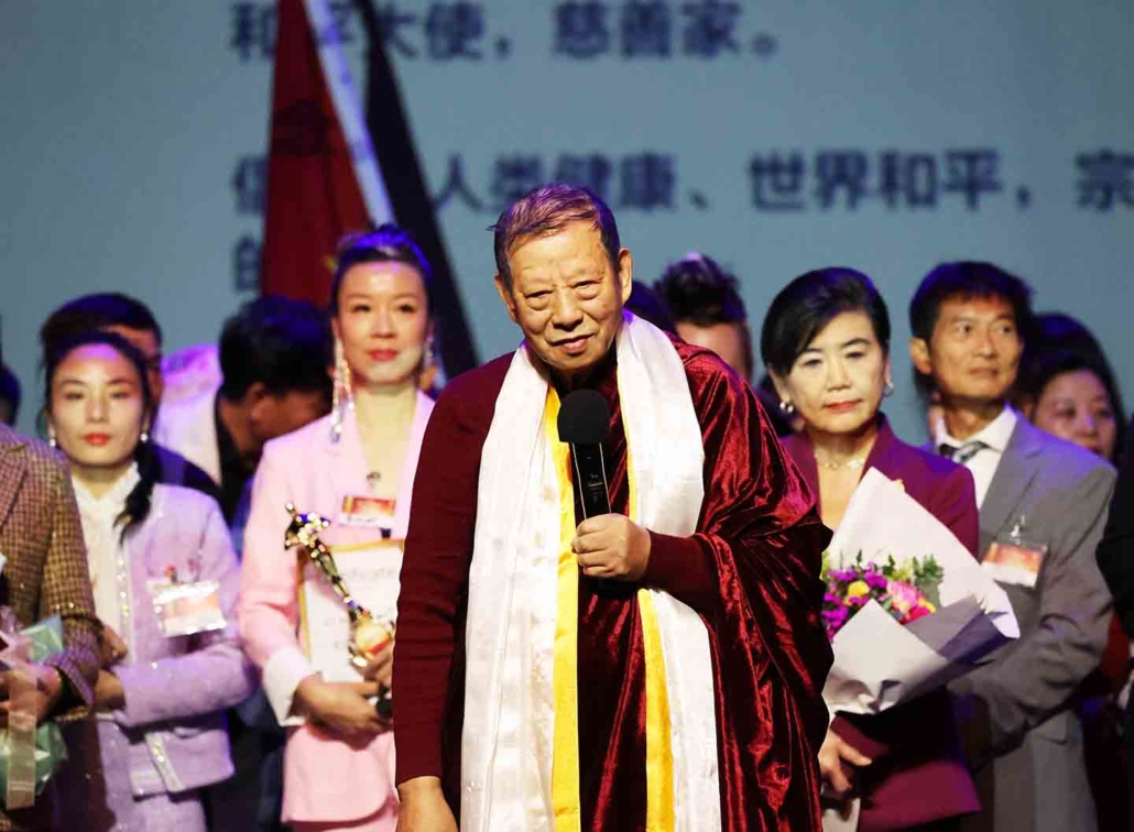 慈悲的世尊紫光上师对晚会盛典和获奖的杰出华人表示祝贺,并对全场来宾加持,传递了世界和平、人类健康、宗教大同的伟大理念。