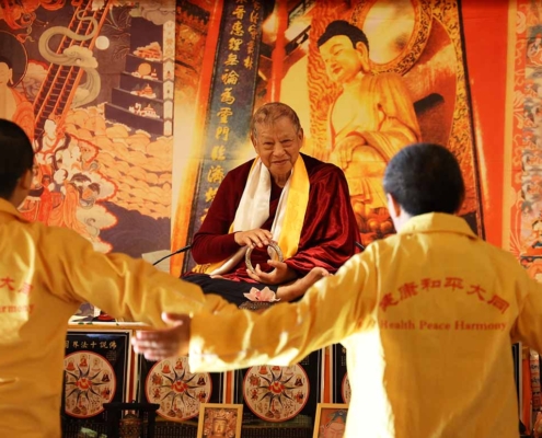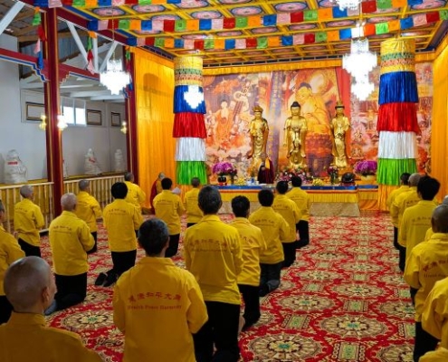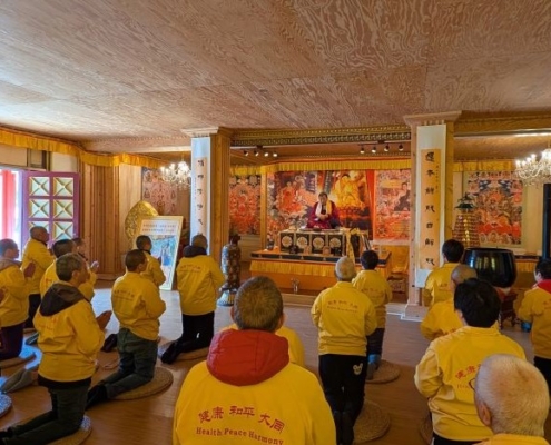 世尊紫光上师慈容祥和、威仪俨然,为新三乘佛子举行殊胜的皈依弟子灌顶仪轨。在肃穆的皈依大戒宣誓中,众弟子逐字念诵,殊胜的三昧耶誓句回荡在寰宇净土之间,载入佛界的云端册录,成为灵性旅程中永不磨灭的印记……众皈依弟子听闻一场天外之音,如痴如醉。从释迦牟尼佛年代传至今,正法之光福泽有缘。