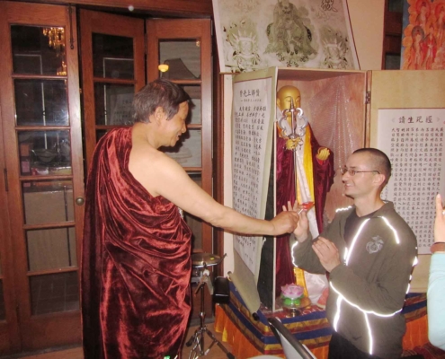 那么多的东西障碍了我的心和我的思维,我必须达到一个更高的层次,才能进一步净化自己。只能通过您的佛法才能做到这一点。我祈求您,紫光上师,请教我更多,让我成为您的皈依弟子。我在这个世界的目的就是要追随佛陀和紫光上师的道路,将觉悟、智慧和祝福传播给所有众生。