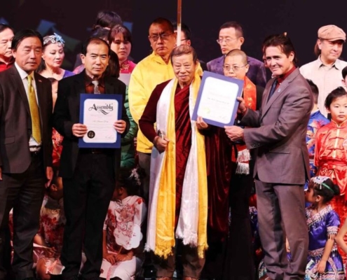为了表彰紫光上师在美国宣扬中华文化所做出的杰出贡献,加州众议院特别颁发了奖状,代表着加州州政府对紫光上师促进加州乃至世界全球化和多元化的努力做出了充分的肯定。紫光上师从南帕萨迪纳市市长麦克·卡西奥提手中接过这个奖状……