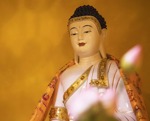 安住在五方佛殿的大光明如来佛像,手托金珠,慈眉善目,白玉为底,镶金饰之,珍稀宝石严身,殊胜无比。又与光环密宗东方寺庙的另一秘密佛,遥相呼应,护佑着佛国的东西方有缘众生。有幸一睹此佛颜者,皆难以忘怀。一些有缘的善信,一到佛像跟前便长跪不起……